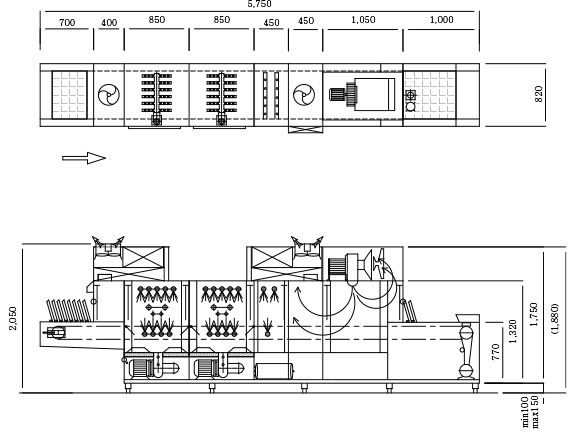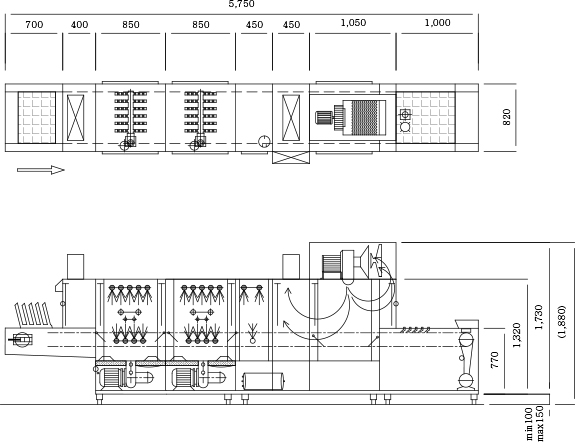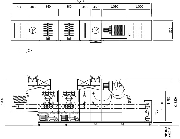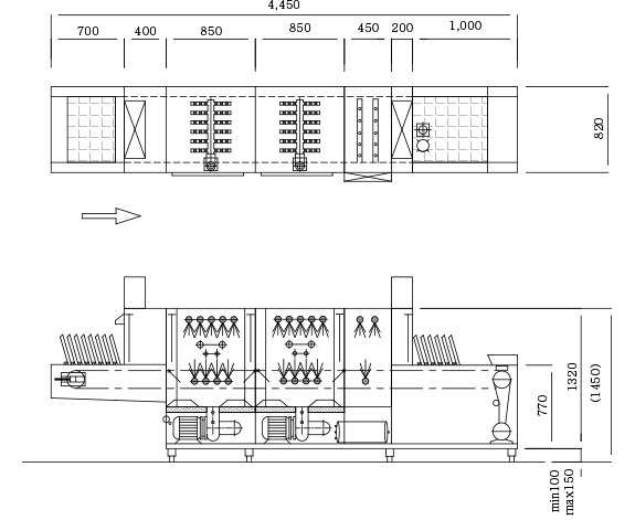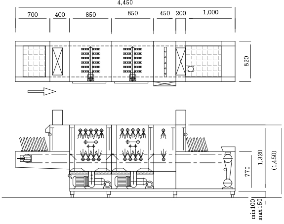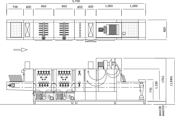 | Gas | PMFE-1200G | 4,450×820×1,450㎜ | 1,090 | 17.3 | - | - | 15 | 20 |